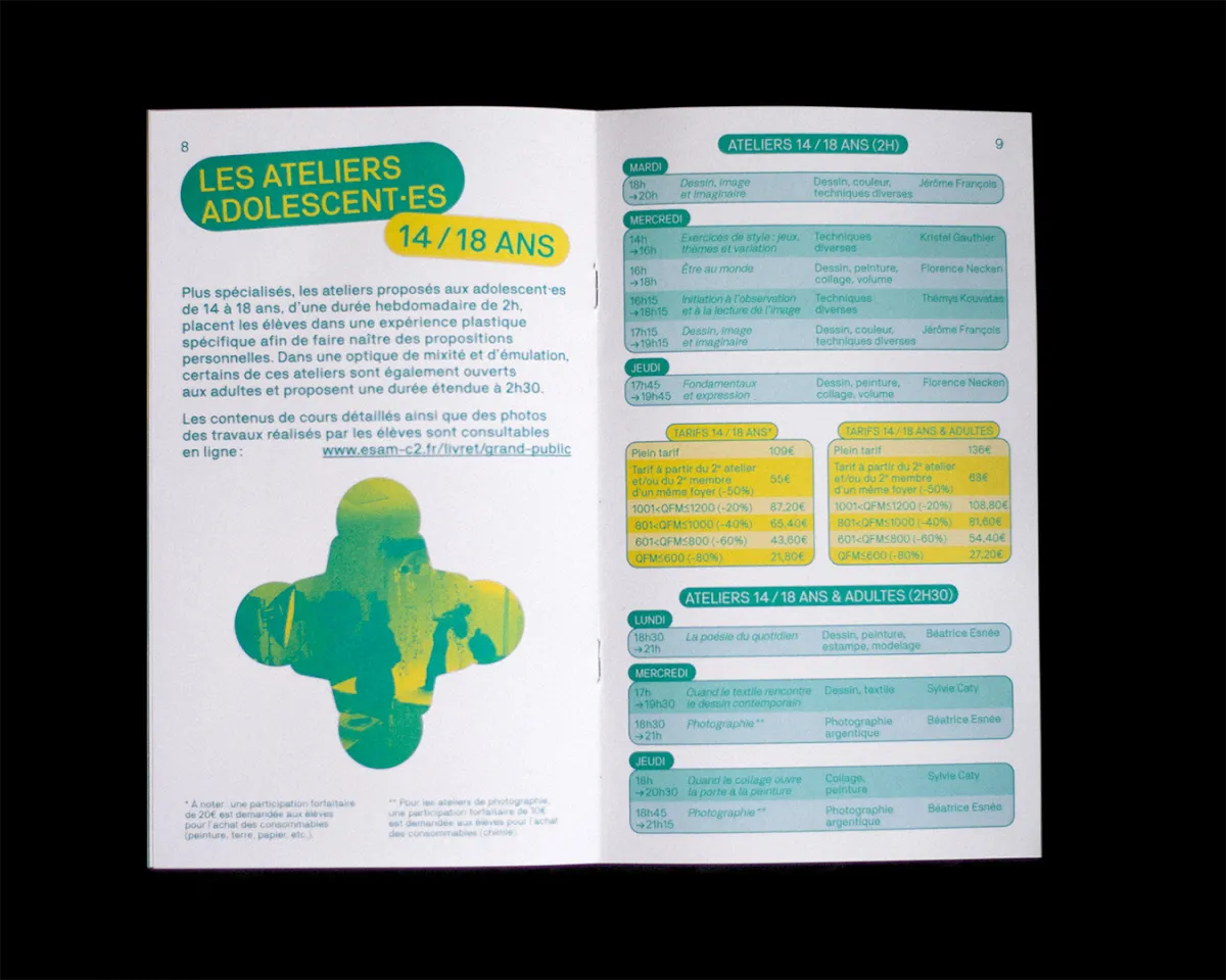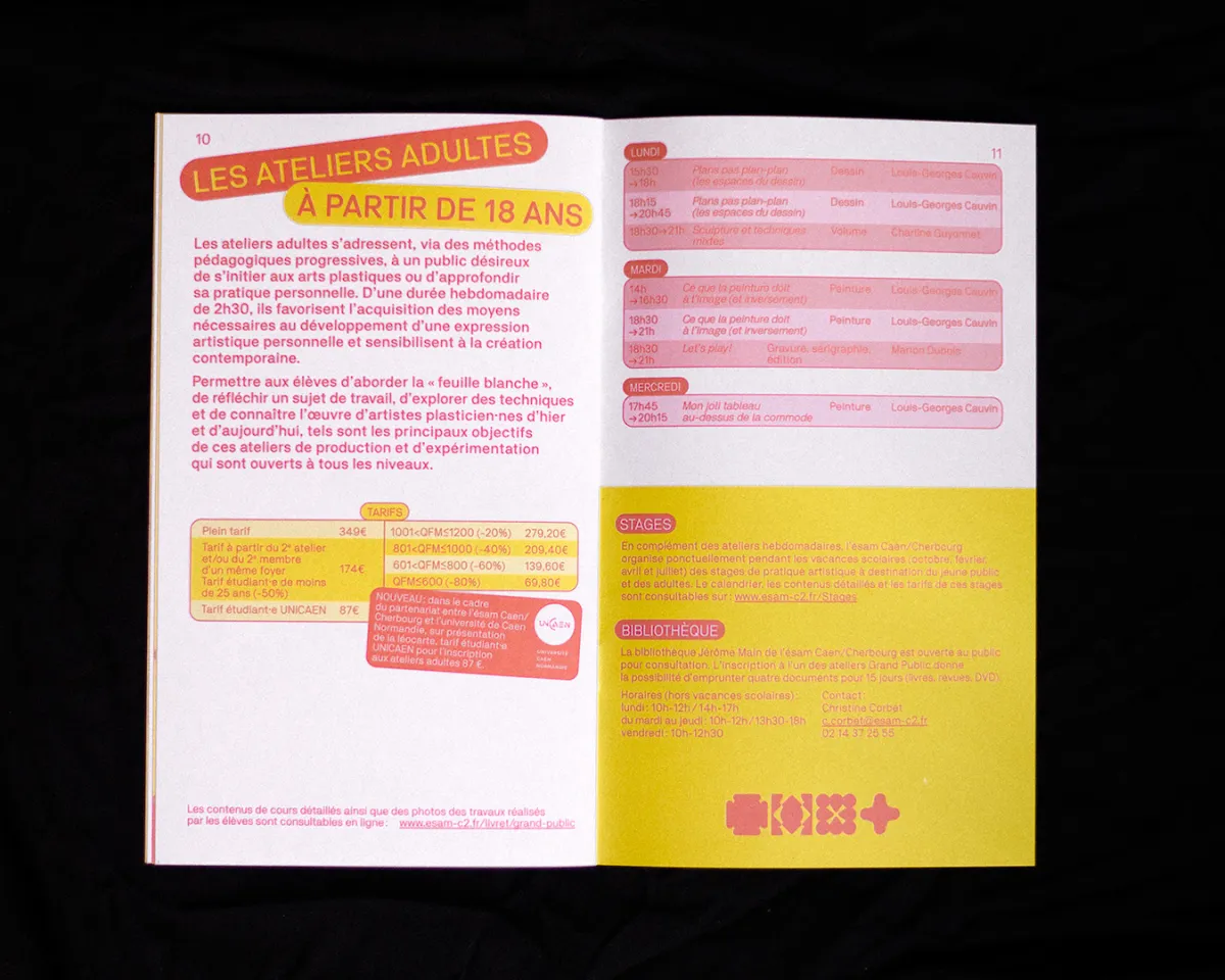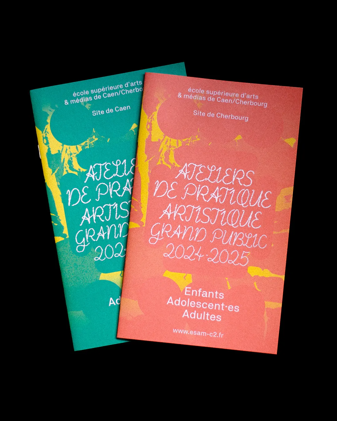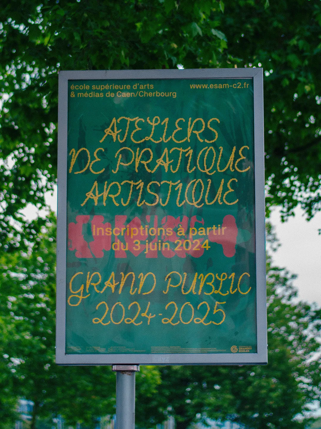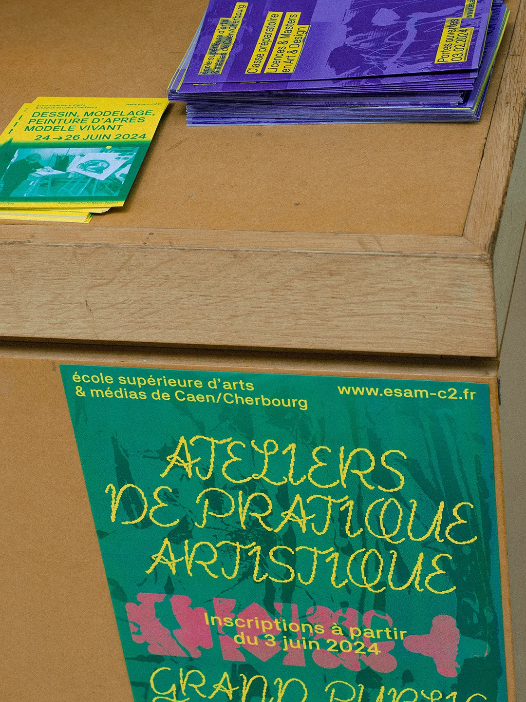 Identité visuelle des cours de pratique artistique de l'ésam Caen/Cherbourg ↦ affiche, brochures & communication numérique (mai 2024)