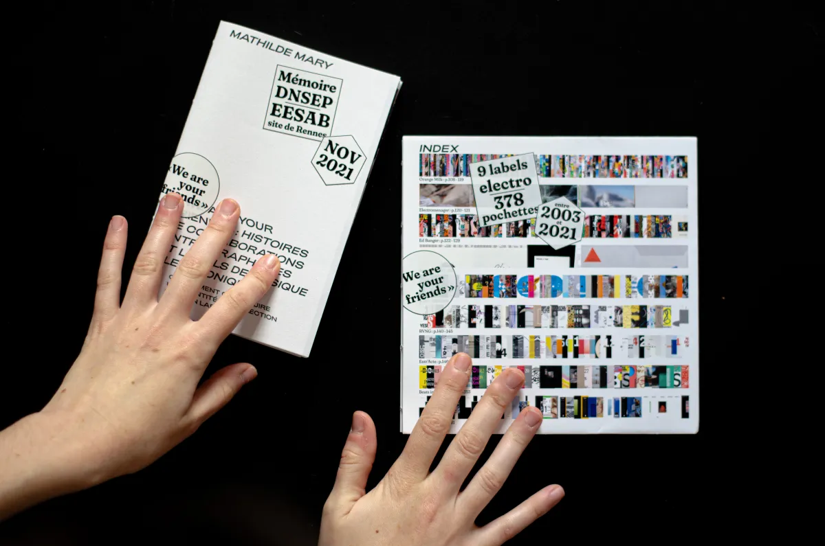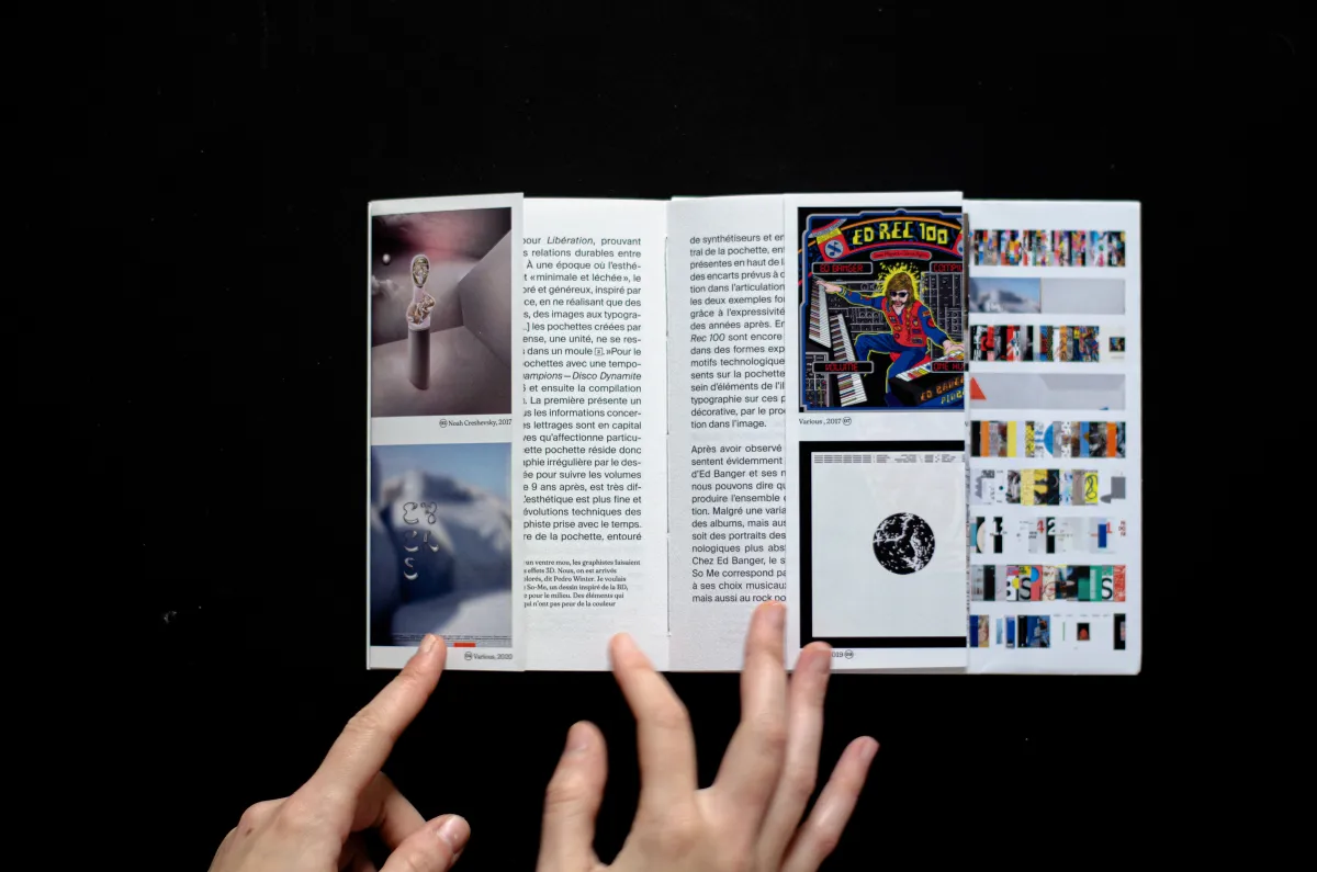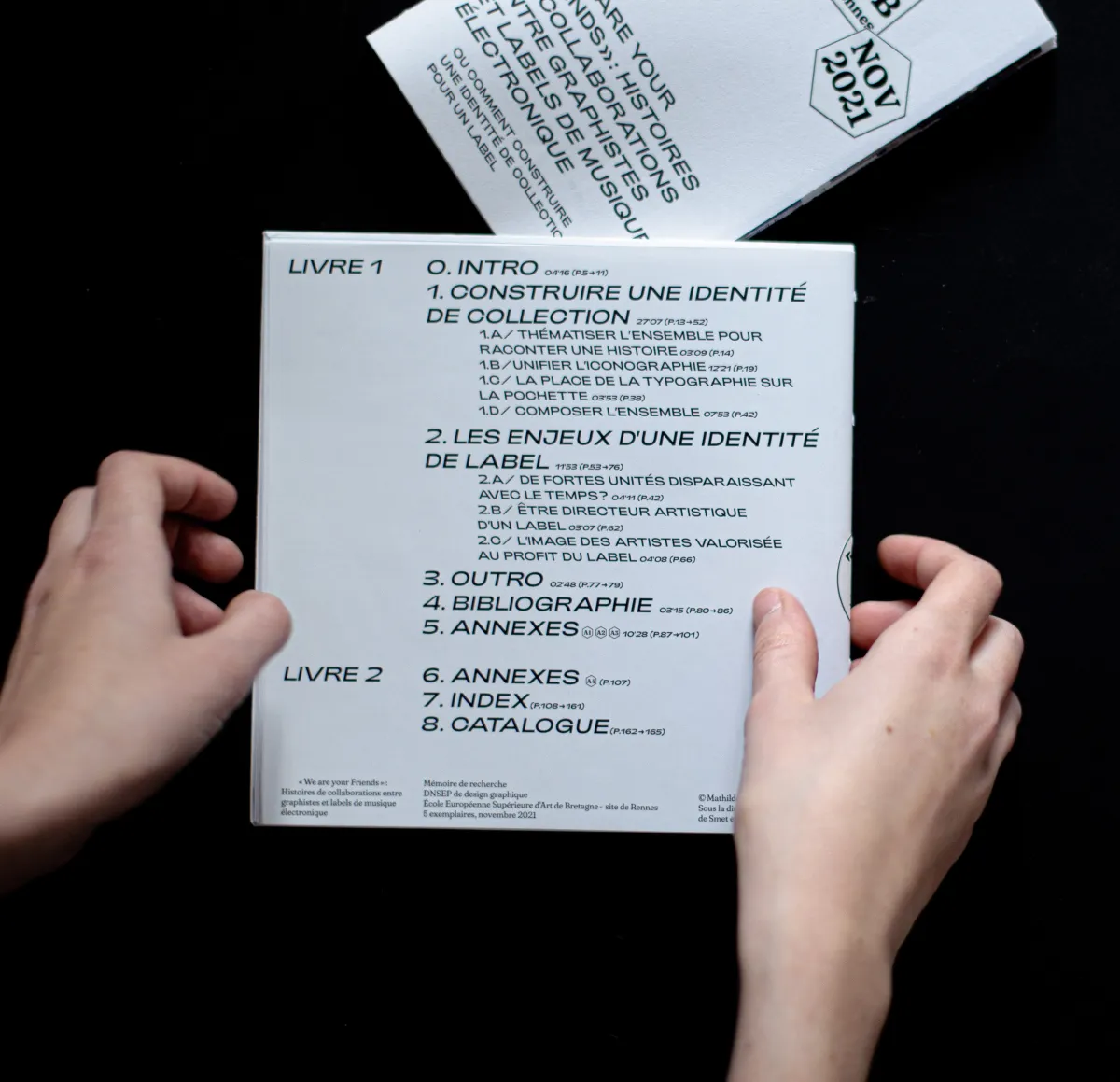 Une annexe intégrant toutes les pochettes des labels se coulisse sur la dernière page du mémoire à la manière d'une pochette de vinyle.