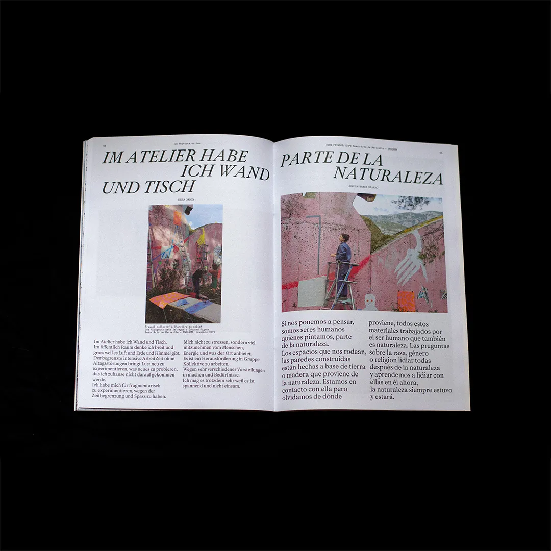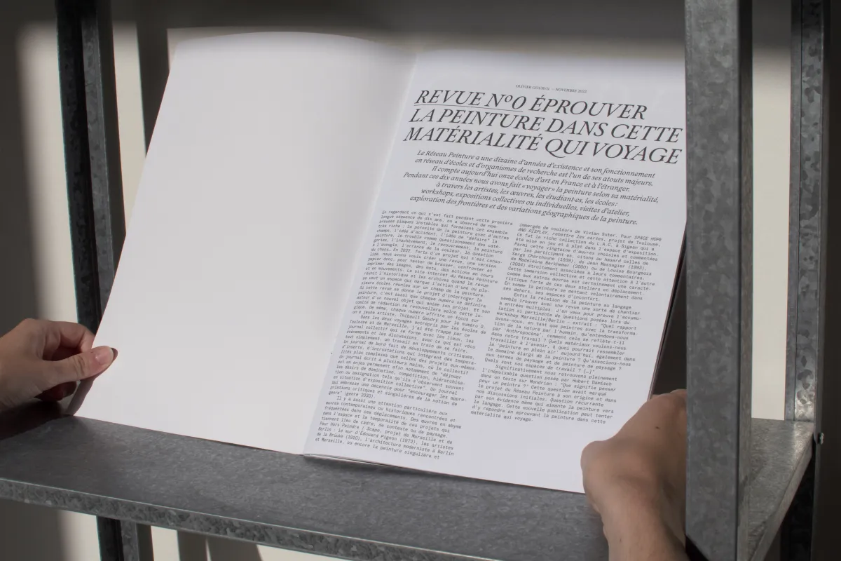 Design éditorial du n°1 de la revue Peinture: 'Volte/face de la Peinture' pour le réseau Peinture. Réalisé avec Louise B.T. (sept 2024)
