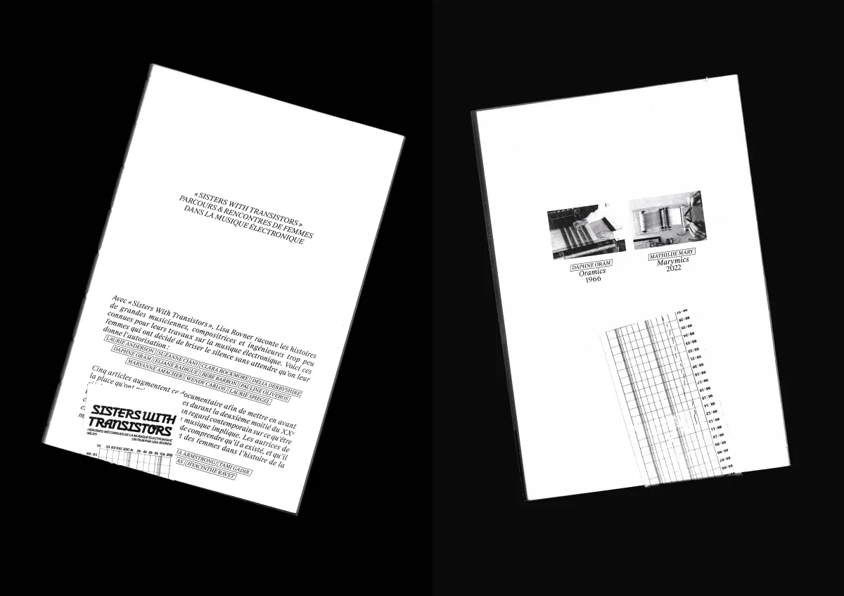 Le graphisme sobre & le lettrage sont inspirés du design des synthétiseurs utilisés par ces femmes. J'ai choisi de n'intégrer aucune image pour se concentrer sur le son transcrit.